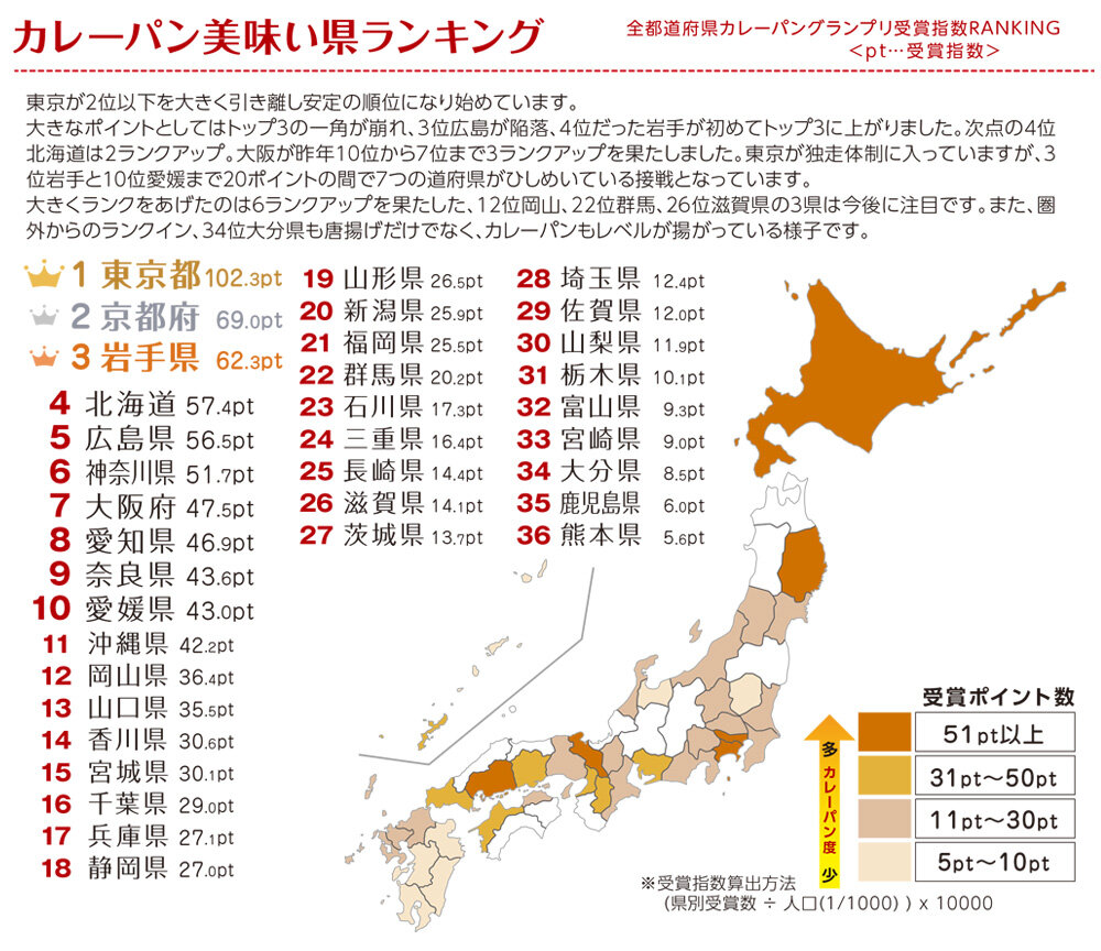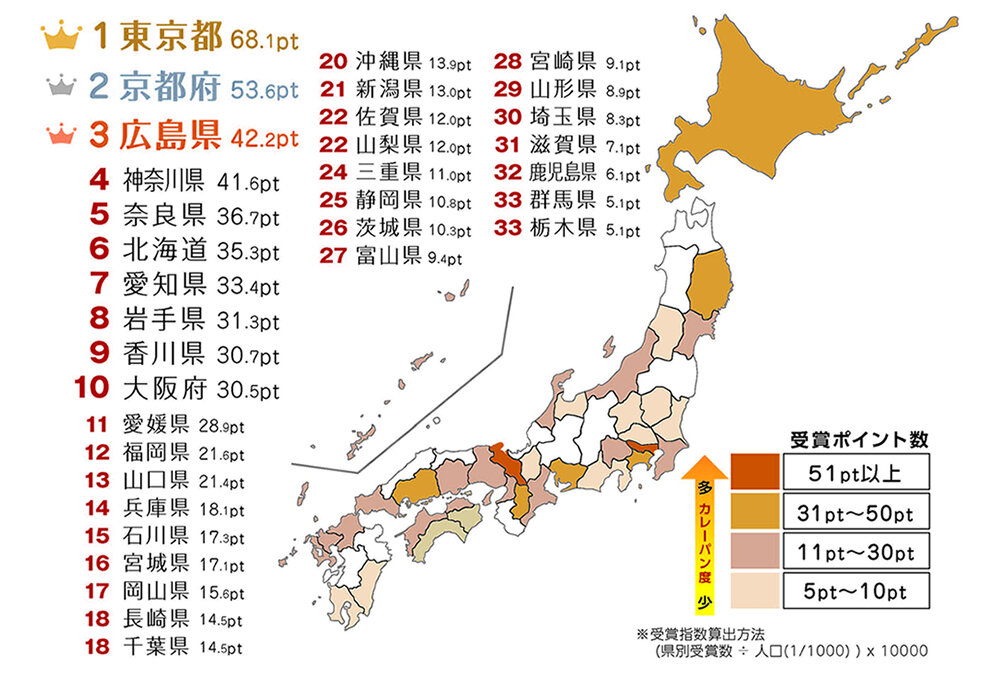 全都道府県カレーパングランプリ受賞指数RANKING < p t...2021年受賞指数>