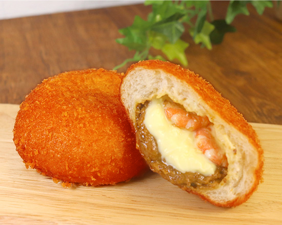 海老の旨味とチーズがとろけ出すペンギンオリジナルの北海道カレーパン。なんと、2020年のカレーパングランプリ®に初出品してから6年連続受賞! 北海道産生乳でつくられたチーズフォンデュと、海老の旨味をぎゅっと閉じ込めた特製のカレールーがとろけ出す『海老カレーパンフォンデュ』。カレールーに甘海老オイルを加えてプリプリの海老をパンの中に丸ごと包み込みました。