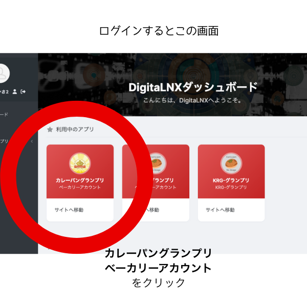 「カレーパングランプリ ベーカリーアカウント」の「サイトへ移動」をクリックすると、下記ベーカリーアカウントのトップ画面が表示されます。