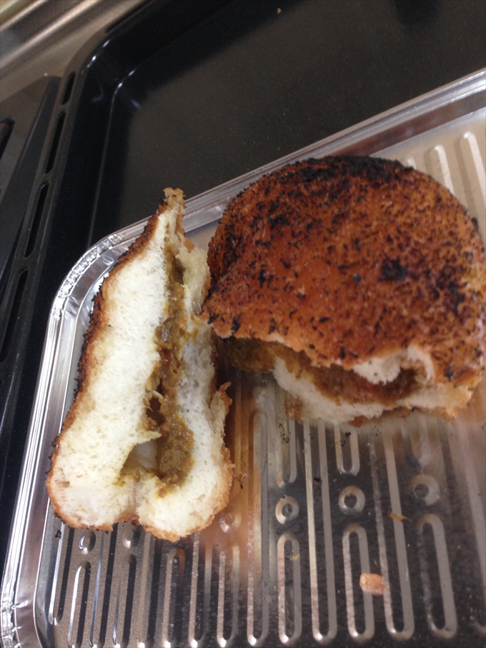 焦げくさ!!!中のパンは少し焦げただけでなかなか焦げ臭いぞ!!