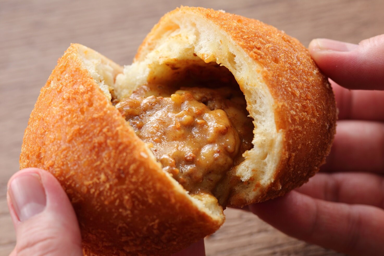 オリジナルカレールーに十勝モッツアレラチーズを練り込み、マイルドに仕上げました。生地はもっちり、表面はカリカリ!