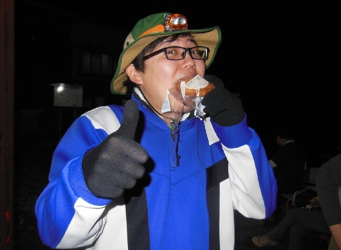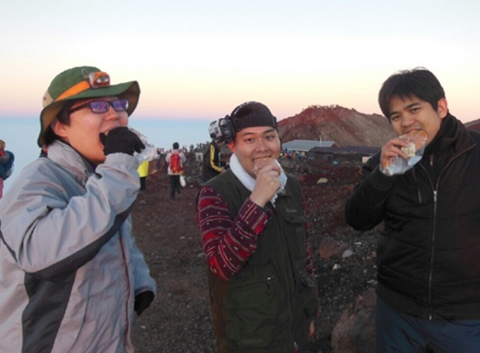 4 度目の正直は、日の出を見ることも目的ですが、一緒に登る仲間と頂上でカレーパンを食べることも