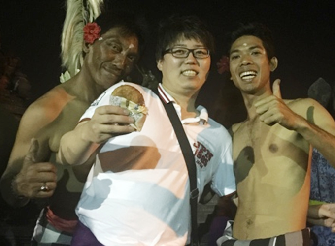 結局見つからずで傷心のまま、カレーパン交流はしようとケチャダンスという、バリの民族舞踊を見に行きました。